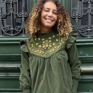 • Blouse brodée en velours milleraies-vert kaki-Mukasa Blouse velours-vert kaki-Mukasa