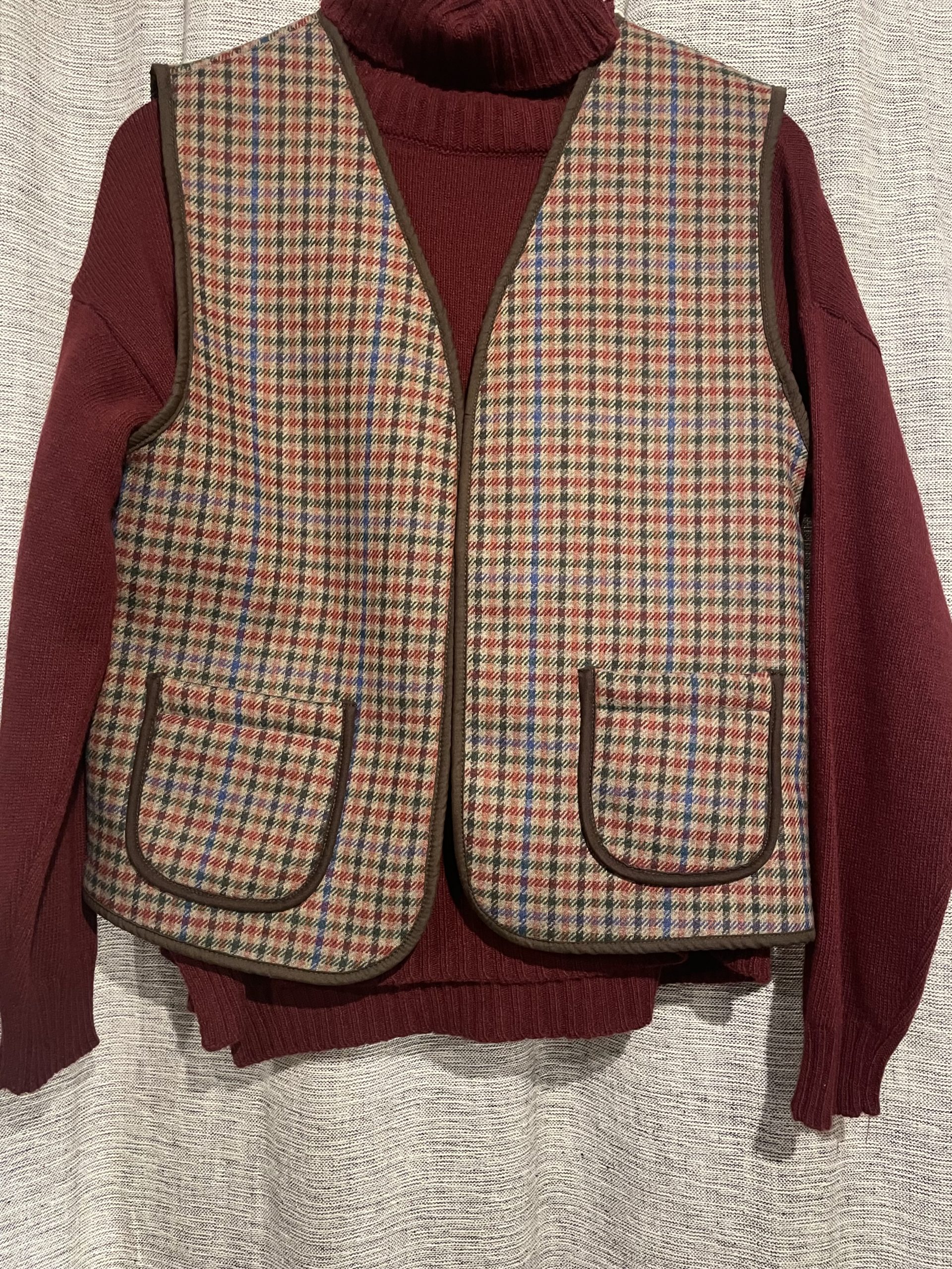 Gilet sans manche à carreaux réversible coté moumoute de la marque française Johanna Paris.