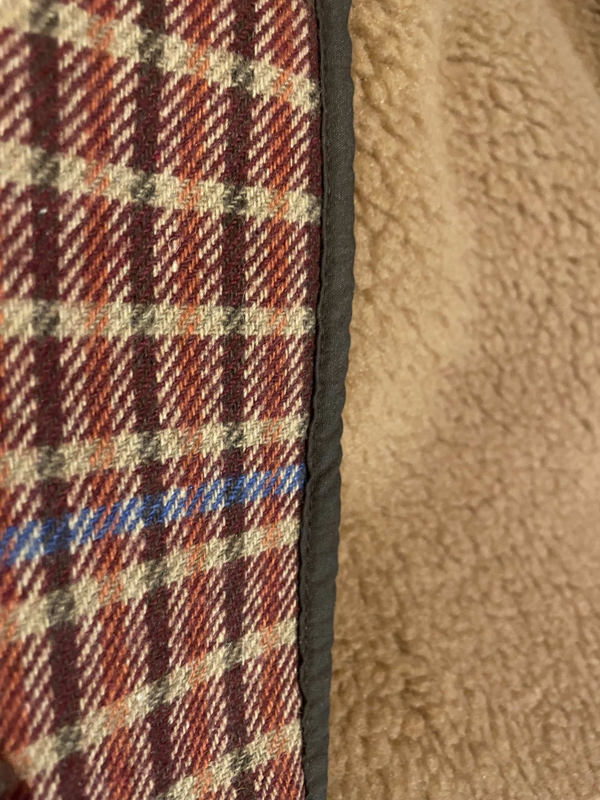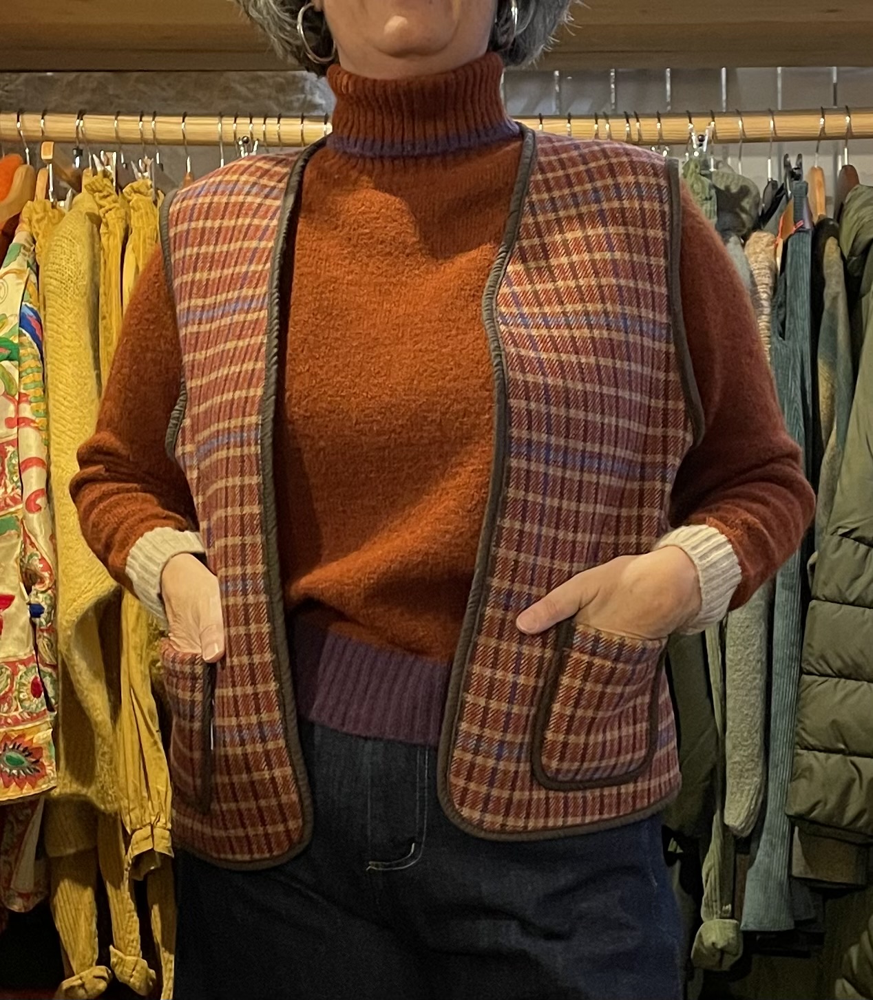 Gilet sans manche à carreaux réversible coté moumoute de la marque française Johanna Paris.