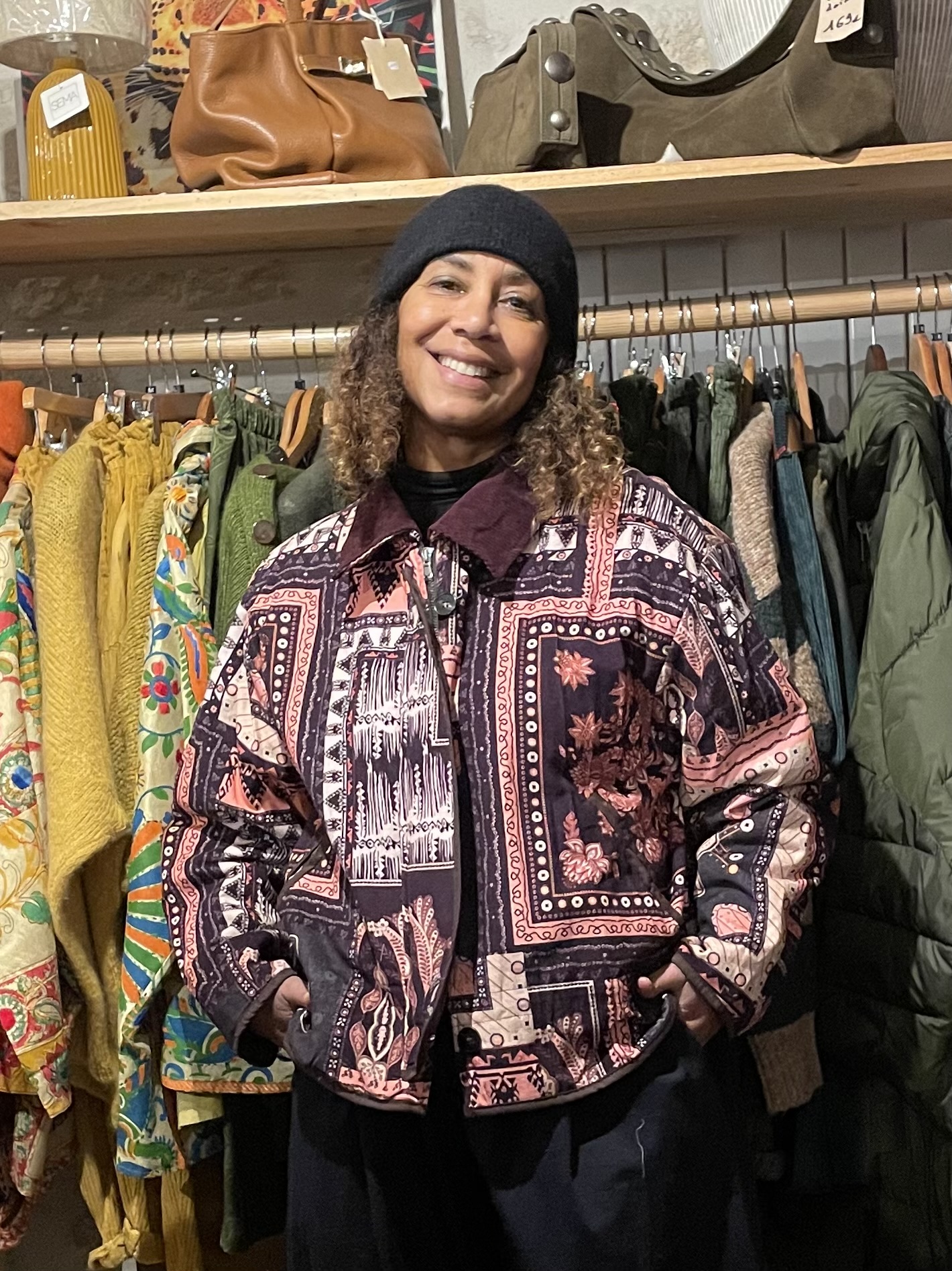 Veste légèrement ample doublée à motifs en velours milleraies de la marque française Johanna Paris.